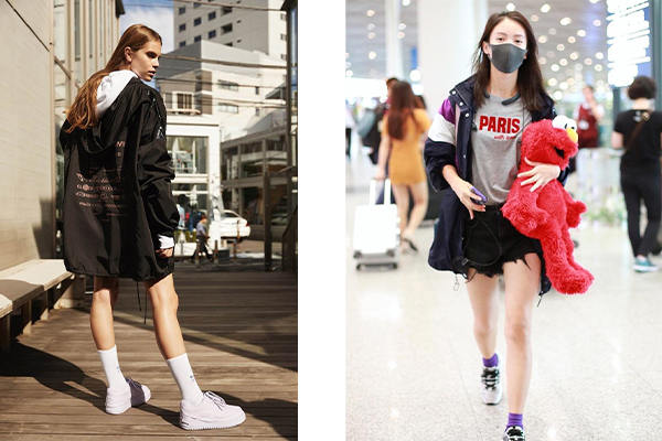 這是滿常見的一款,但同時(shí)也是最具風(fēng)格性的。在普通的穿搭,只要套上透明雨衣式的沖鋒衣,都可以化腐朽為神奇!利用內(nèi)搭上衣來避免撞衣的窘境,如圖左整套式的透明搭配,以頭跟腳的黑色配件來強(qiáng)化對(duì)比;圖右則是在亮橘色的衛(wèi)衣外,罩上透明黑邊的沖鋒衣,點(diǎn)亮了原本較單調(diào)的穿搭;圖中的下身選擇簡單的五分短褲,加以凸顯上半身的半透明沖鋒衣之特色。