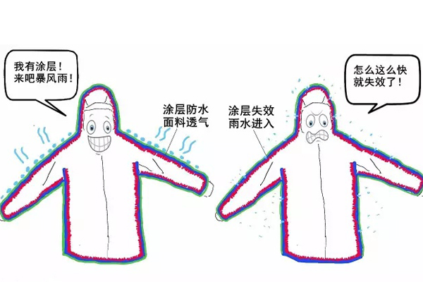 親水涂層《TU和TPU)上面這種方法主要用于PU防水涂層,PU防水涂層指的是在衣服表面織物里面附著一層防水涂層(PU聚氨酯),根據(jù)需要涂層厚度不等。親水涂層是在織物表面涂上一層親水涂層,由于涂層覆蓋了織物的所有空隙,因而可以防水。如果高分子鏈上有親水基因,含量和排列合適,則它們可以與水分子作用,借助氫鍵和其他分子間力,在高濕度一側(cè)吸附水分子,通過(guò)高分子鏈上親水基團(tuán)傳遞到低濕度一側(cè)解吸。主要特點(diǎn)是防水效果比較好,加工方法簡(jiǎn)單,但是透濕、透氣性能較差。