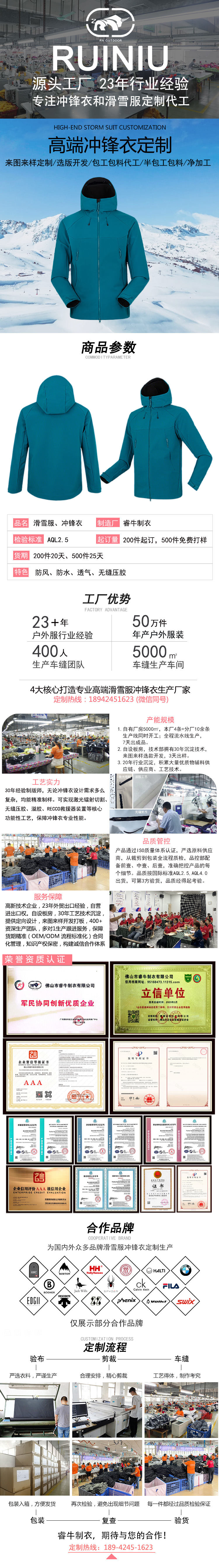 持續23年專注沖鋒衣、滑雪服定制加工廠家