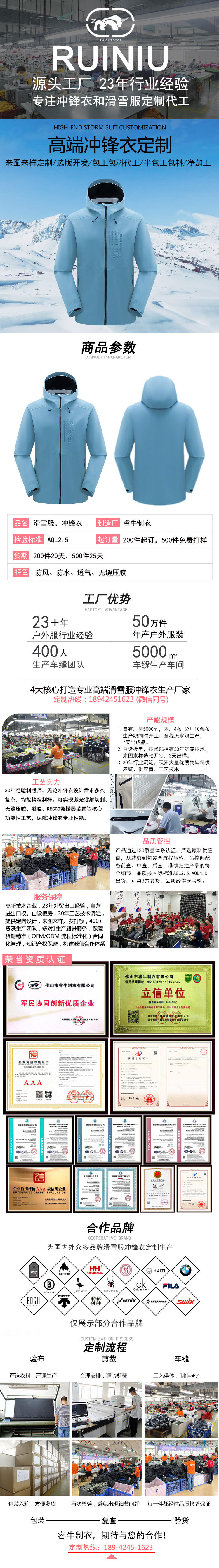 廣東睿牛戶外用品有限公司:專注沖鋒衣、滑雪服、風衣、夾克的梭織服裝定制加工廠家