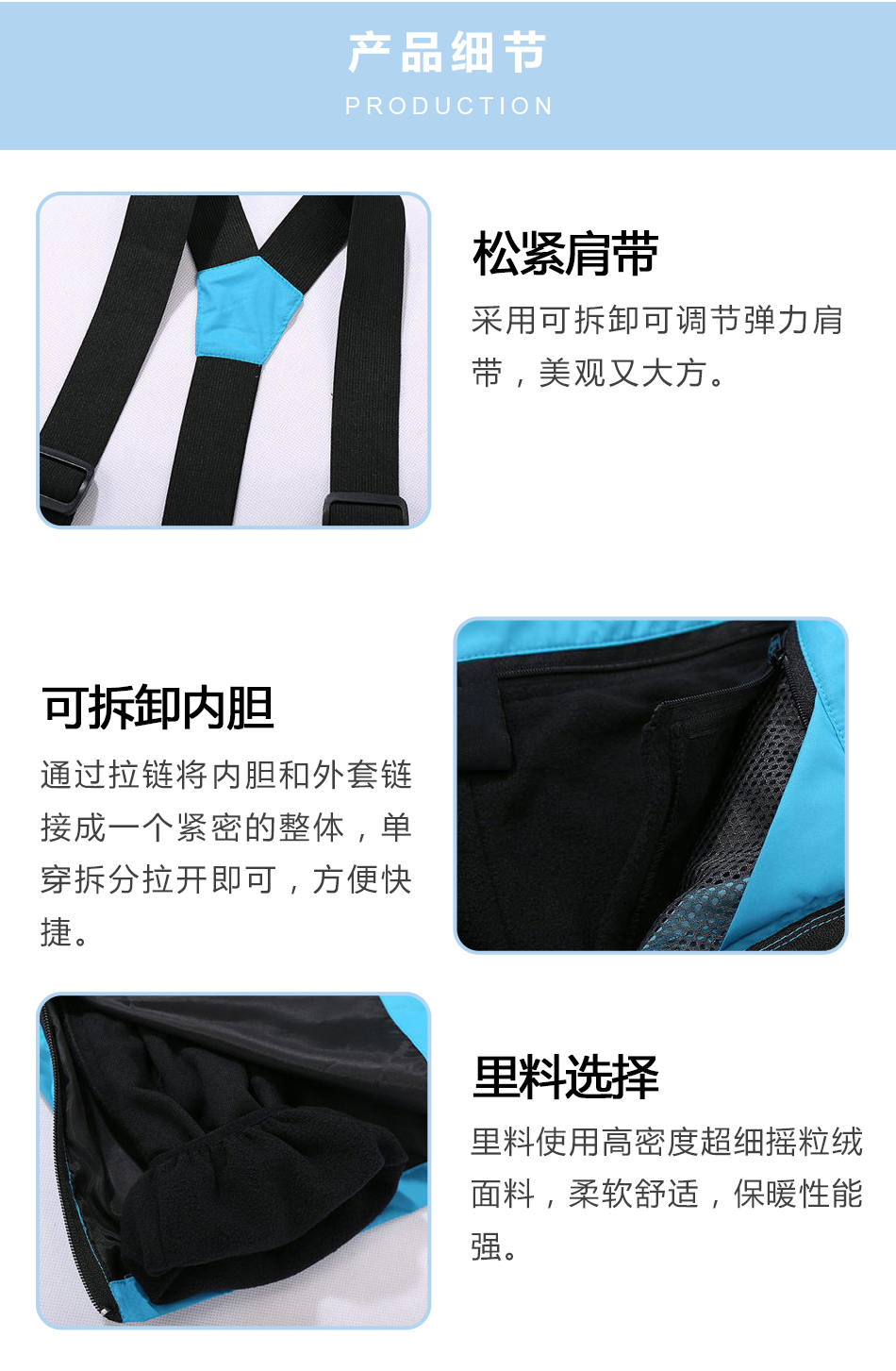 睿牛戶外服飾—可拆卸抓絨內(nèi)膽滑雪褲定制