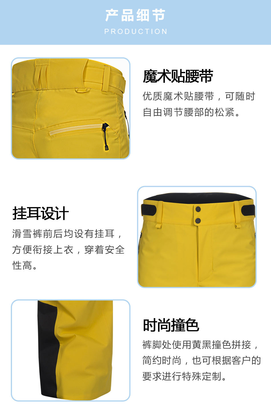 • 掛耳設(shè)計(jì)滑雪褲定制前后均設(shè)有掛耳,方便銜接上衣,穿著安全性高。