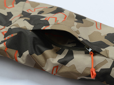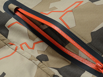 鐳射切割:衣服口袋采用鐳射激光精確切割,再使用膠條密封,在滿足防水的功能下又不失美觀。